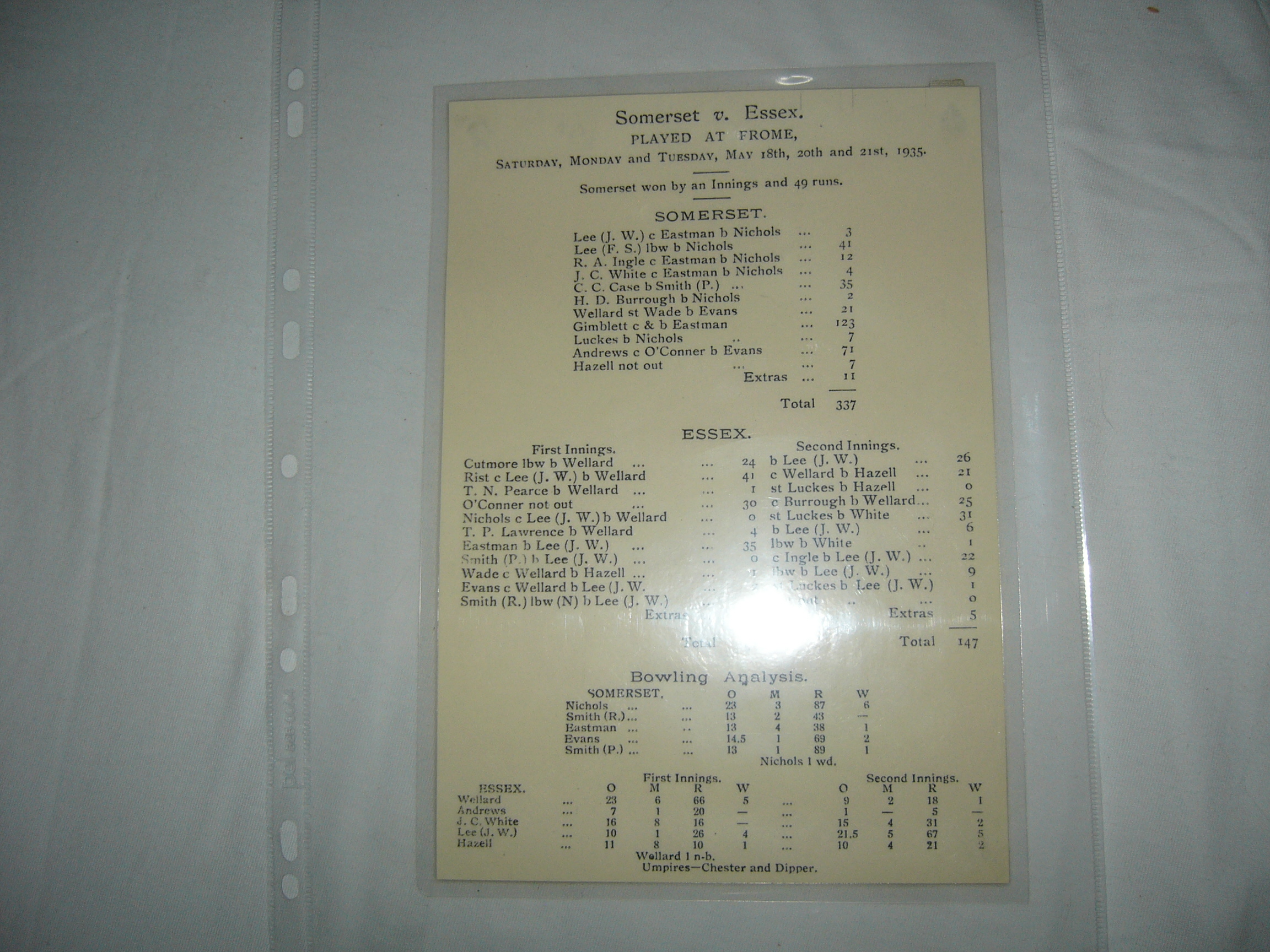 Collection/s: Score Books, Scorecards and Programmes, Score Cards, Scorecard