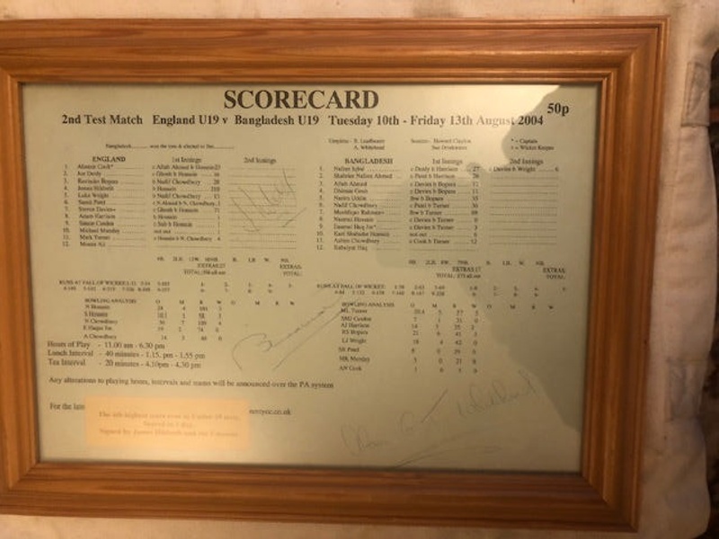 Collections post April 2024 – Object Details Name/TitleFramed Scorecard - England U19 v Bangladesh U19 13.08.2004 TauntonAbout this objectFramed Scorecard - England U19 v Bangladesh U19 13.08.2004 TauntonMakerUnknownMaker RoleMakerDate Made2004Place MadeTauntonObject TypeScorecardObject numberSCM.003038Copyright LicenceAll rights reserved