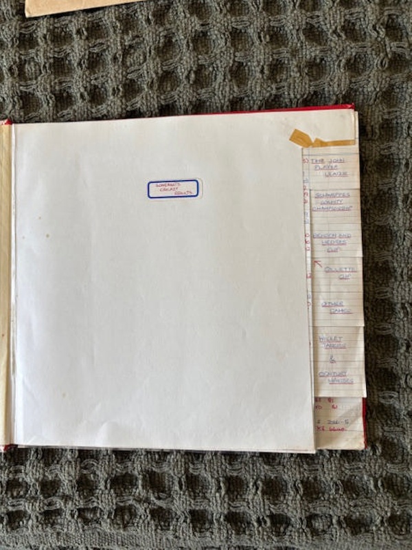 Collections post April 2024 – Object Details Name/TitleSomerset Cricket Results and Analysis 1979 - 1985About this objectSomerset Cricket Results and Analysis 1979 - 1985MakerAndrew MaxwellMaker RoleMakerDate Made1979Object TypeScorebookObject numberSCM.003094Copyright LicenceAll rights reserved