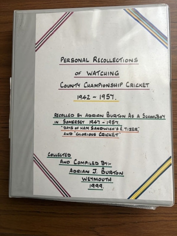 Collections post April 2024 – Object Details Name/TitleAdrian Burton folder - County Championship 1942-1957MakerAdrian BurtonMaker RoleMakerAbout this objectAdrian Burton folder - County Championship 1942-1957Date Made2010Place MadeWeymouthObject TypeBookletObject numberSCM.003159Copyright LicenceAll rights reserved