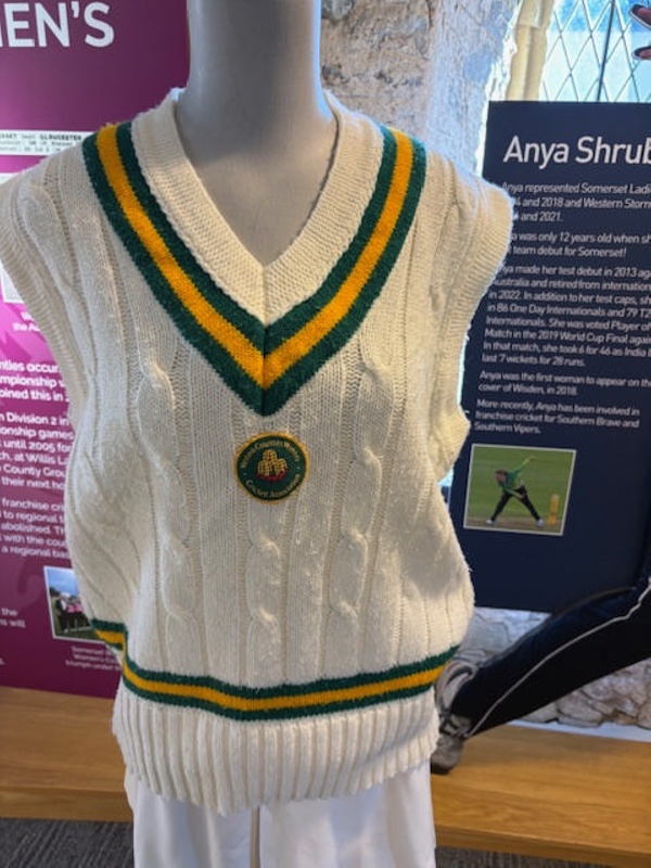 Collections post April 2024 – Object Details Name/TitleWomen’s cricket clothing - sweaterAbout this objectWomen’s cricket clothing - sweaterMakerUnknownMaker RoleMakerDate Made199xPlace MadeTauntonObject TypeClothingObject numberSCM.003197Copyright LicenceAll rights reserved